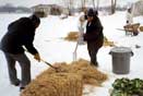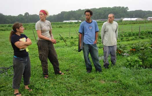 Student interns at the Cook College Organic Farm, Rutgers U., NJ (left to right): Cheryl Zienkiewicz, senior, majoring in nutrition; Lindsay Bockstedt, graduate, majored in public health; Pete Martinez, graduate, majored in journalism & English; Scott Latham, senior, majoring in natural resources. Although Cook College has an agriculture major, interns at the student farm come from many different departments. |