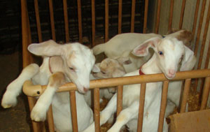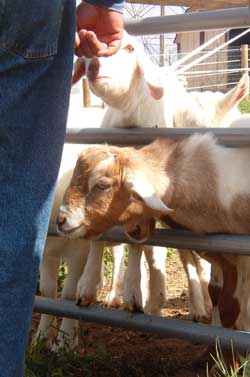But these emotional ties have a practical angle. Wild goats are difficult to herd, to treat, to milk. In a small, hands-on operation, there?s no room for wild goats. The relationship building begins a birth. The babies are separated from the mothers immediately and bottle fed. It makes the kids easier to handle as they grow older and makes the does more willing to be milked. The mothers then enter the milking schedule.