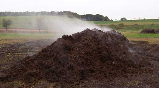 Organic certification standards allow raw manure to be spread on fields at least 90 days before harvesting crops where the edible portion does not touch the soil (i.e. sweet corn) and 120 days where the edible portion does touch the soil (lettuce, carrots, onions, etc.). All other animal manure must be composted, and standards require that manure be shaped into a windrow, turned a minimum of five times in 15 days and achieve a recorded temperature between 133°F and 170°F in order to be considered finished compost. Anything else is termed “raw manure,” regardless of how long it has been piled up behind the barn.