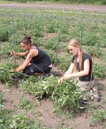 As Julie helps her crew of five tie tomato plants to stakes, she explains to me how the apprenticeship program and the farm work. Originally started in 1986 by an order of nuns, the sisters of Sainte-Croix, D-Trois-Pierres was formed as a model farm on which youths could apprentice. Soon after that the city of Montreal was brought in as a partner.
