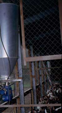 According to Deter Weber, the challenge with the outdoor runs is getting the hens back inside. The doors automatically close at 4:00 pm. To coax the birds back in, scratch feed is automatically dispensed in the winter garden at 3:45 pm.